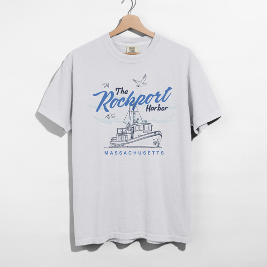 Rockport Harbor Massachusetts Graphic Tee | Coastal New England Boat Shirt
