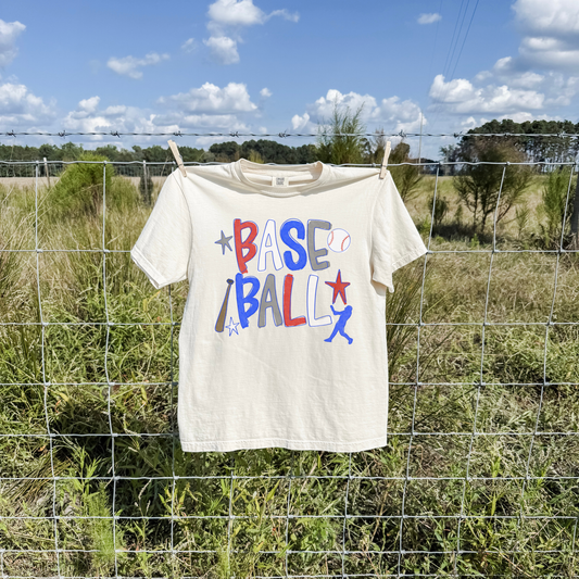 Baseball Retro Graphic Tee – Red White & Blue Game Day Shirt - Ivory