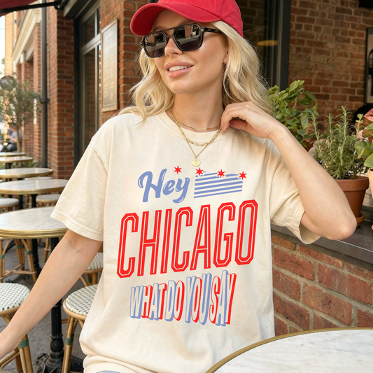 Hey Chicago What Do You Say Graphic Tee | Patriotic Summer City Tee - Ivory