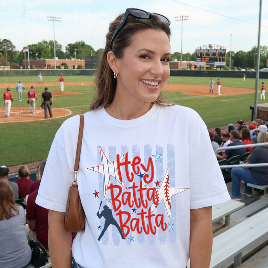 Hey Batta Batta Retro Baseball Graphic Tee - White