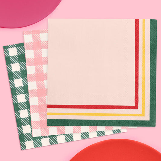 Camp Bride Cocktail Napkins – 24 Pack 3-Ply Gingham & Retro Stripe Bridal Party Napkins
