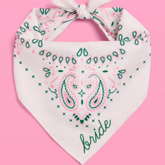 Camp Bride Bandana – Pink & Green Bride Camping Scarf