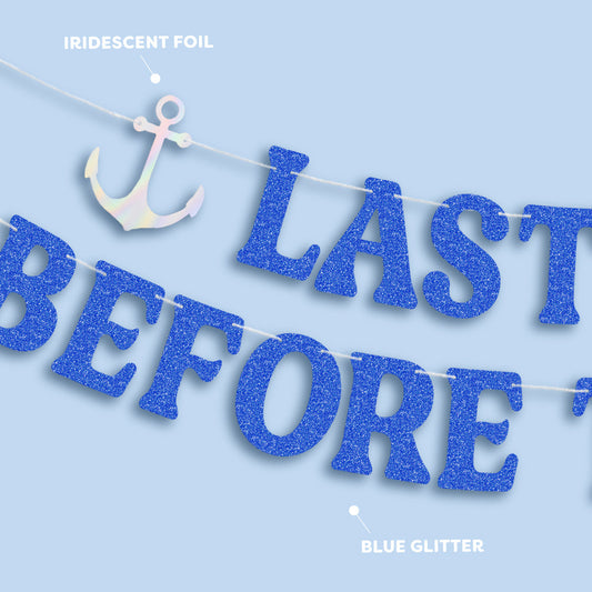 Last Sail Before the Veil Blue Glitter Banner – Nautical Bachelorette Party Decor (5 ft)