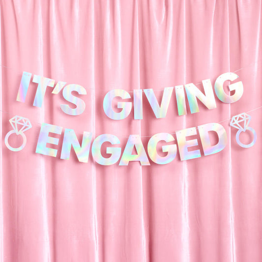 It’s Giving Engaged Banner – Iridescent Engagement Party Decoration