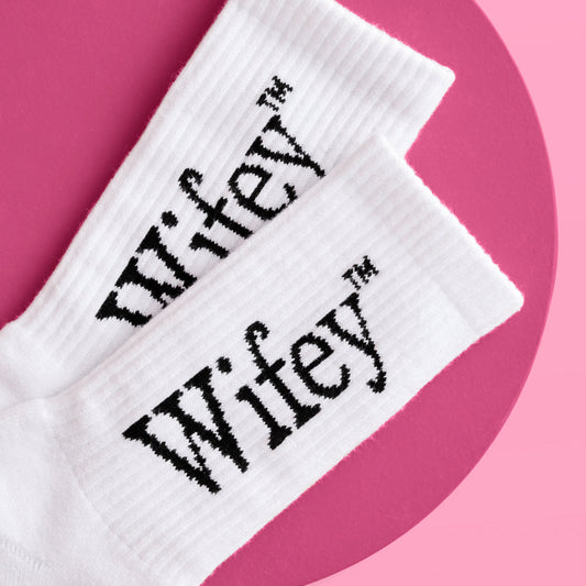 Wifey White Crew Socks – Bride Bachelorette Gift & Wedding Weekend Lounge Socks
