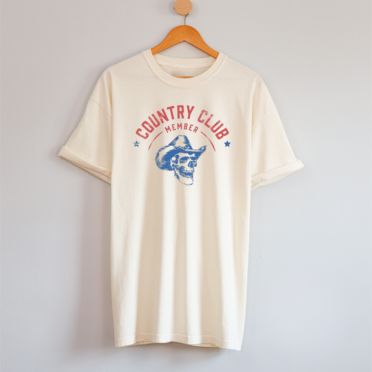 Ride Easy Tee Shirt - Ivory With Light Blue Print