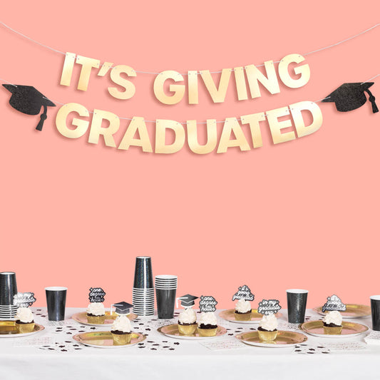 It’s Giving Graduated Banner – Gold Foil Graduation Party Banner