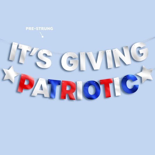 It’s Giving Patriotic Banner Set – Red, Blue & Silver Foil 4th of July Party Decor