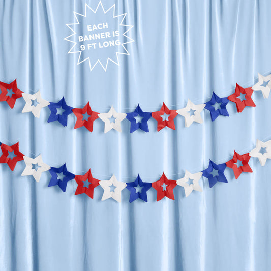 Red White & Blue Star Banner Set – Patriotic 4th of July Paper Garland Décor