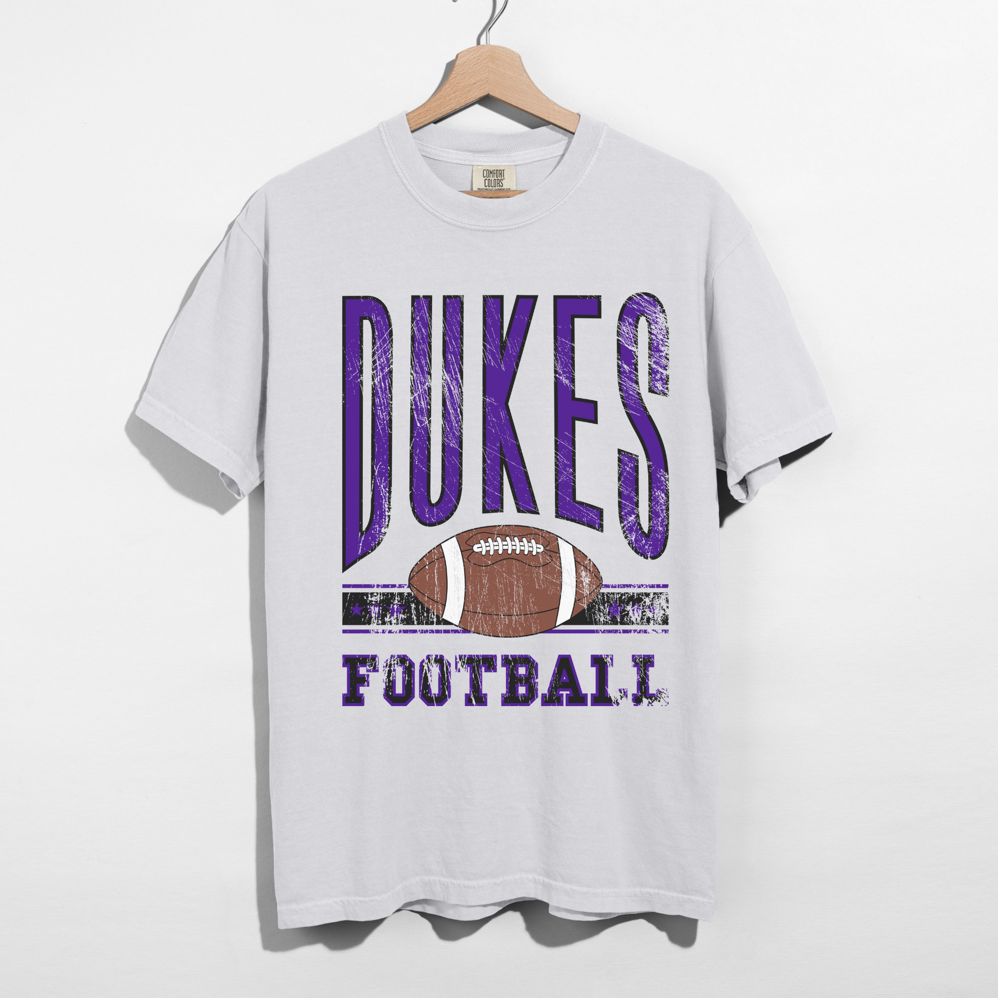 Design: Bold Dukes Football graphic with vintage distressed finish