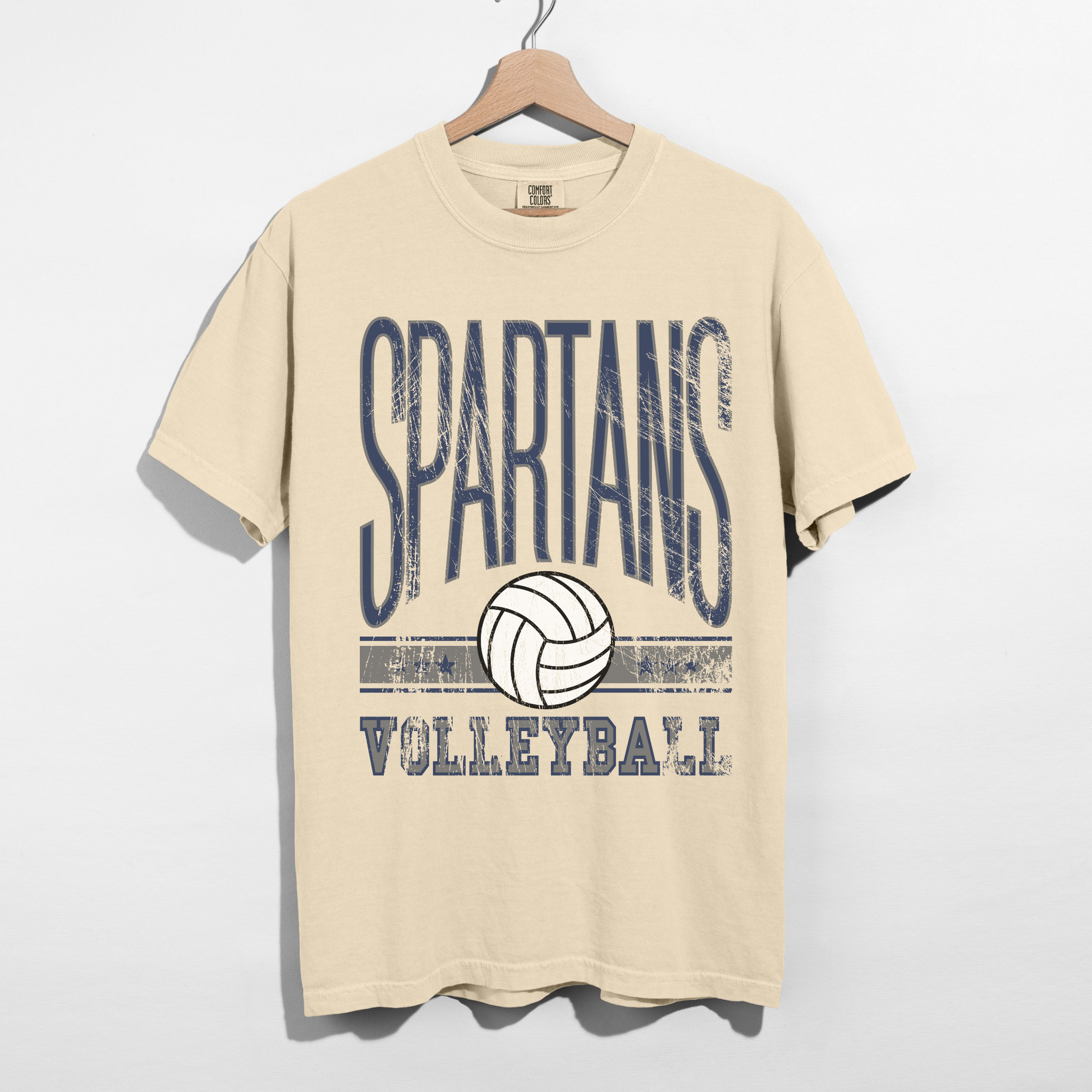 • Distressed navy blue Spartans Volleyball design