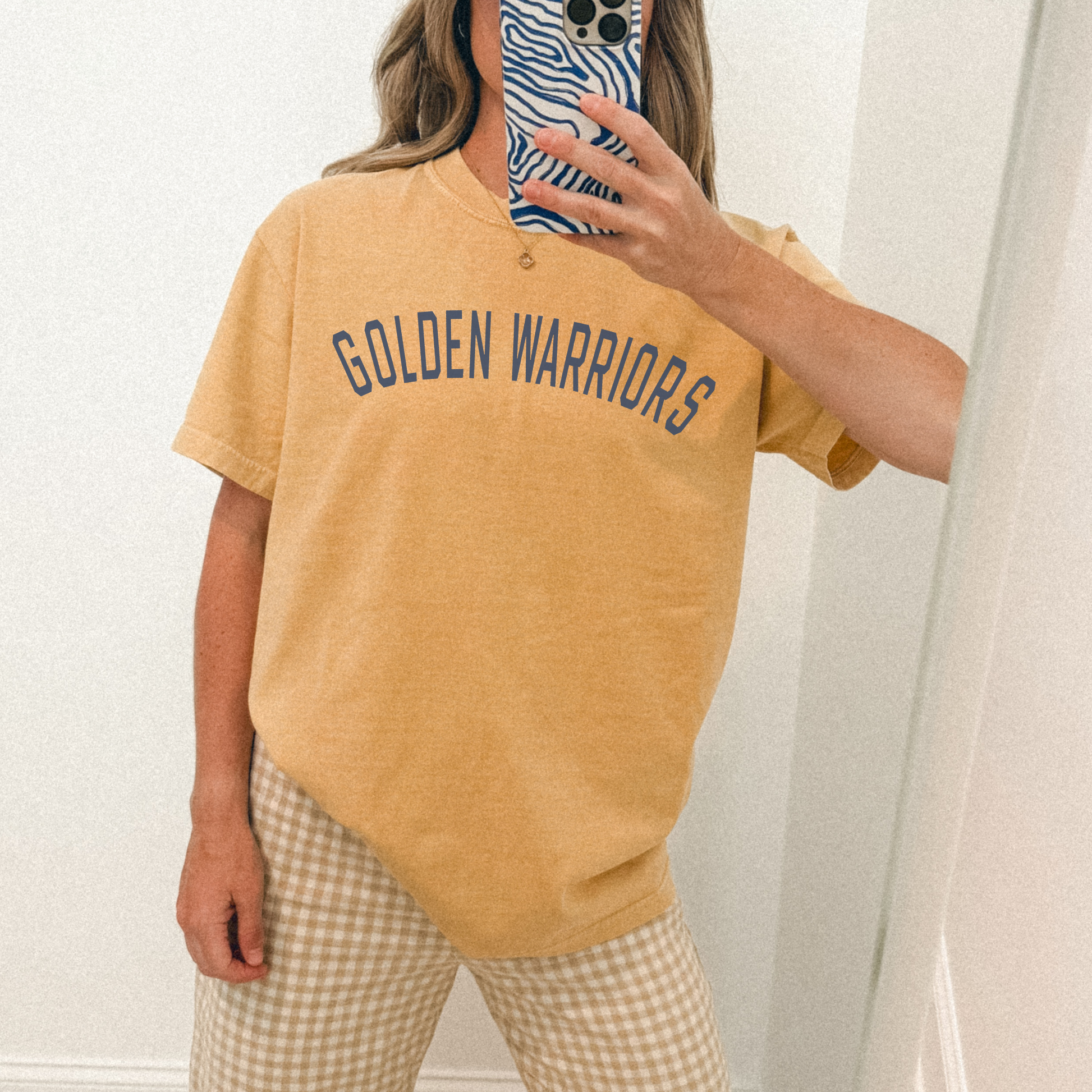 Classic collegiate arched text: “Golden Warriors”